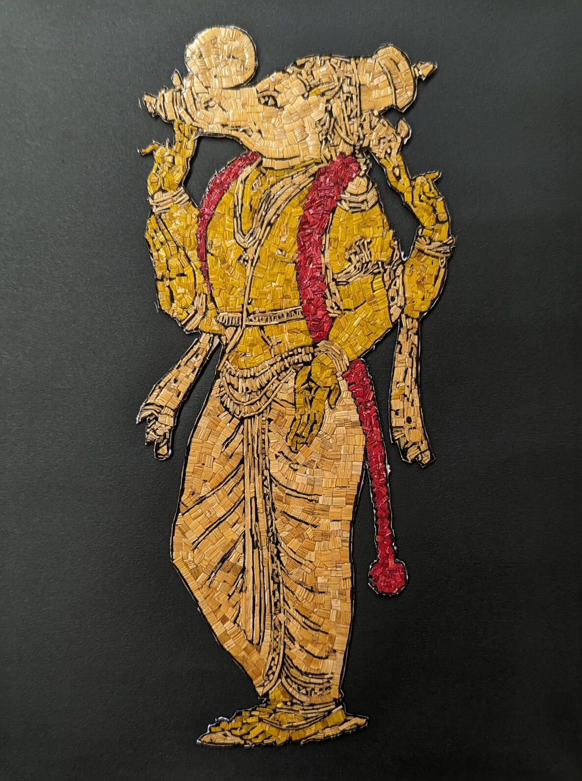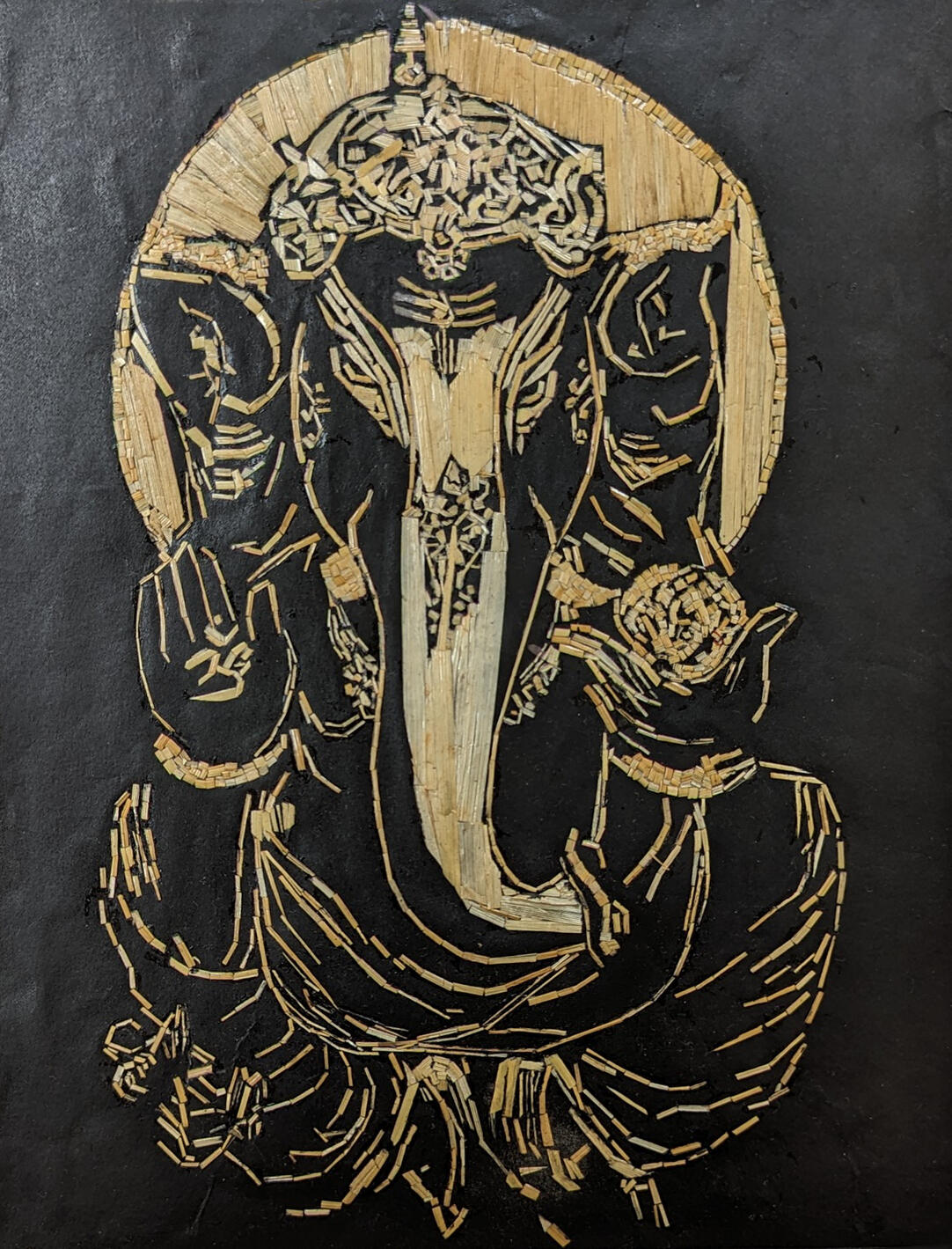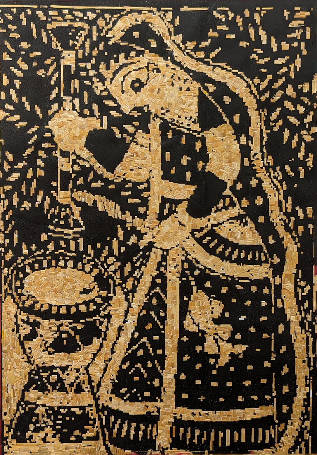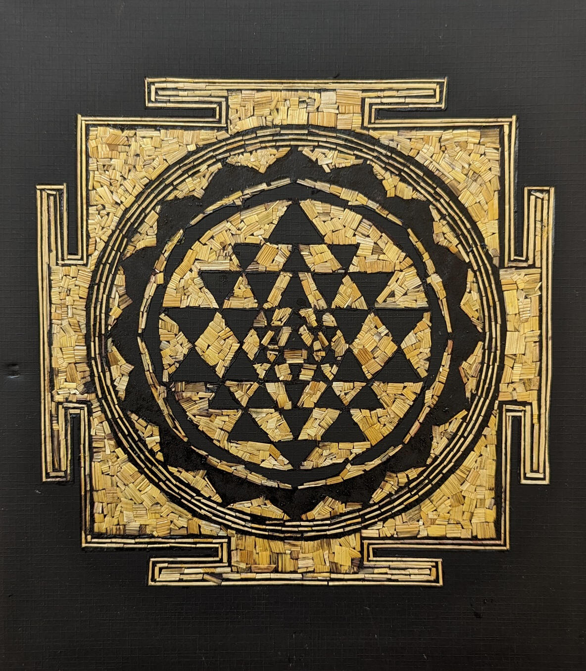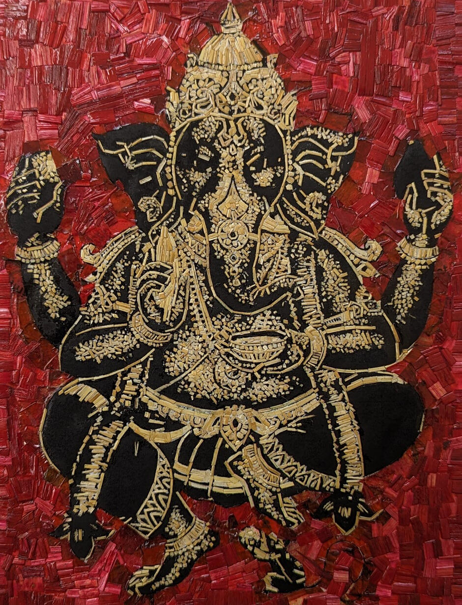 Straw is a simple material. In my work, it becomes structure, texture, and story.I create detailed artworks using carefully cut and arranged pieces of straw. Each work is built by hand, layer by layer.By selecting straw of different ages, I bring natural variations in tone, from pale gold to deep brown, without artificial coloring.My subjects draw from mythology, temple architecture, tribal life, nature, and symbolic geometry.Many works reinterpret traditional Indian forms such as Ganesha, Jagannath, classical dancers, and sacred diagrams through the precision of straw mosaic.Every piece is constructed through patience and control. Straw is split, flattened, shaped, and placed individually to create contrast, depth, and rhythm.The process is slow. The material demands it.This body of work is an exploration of how a fragile element can hold permanence through discipline and design.Phalguni Pattnaik