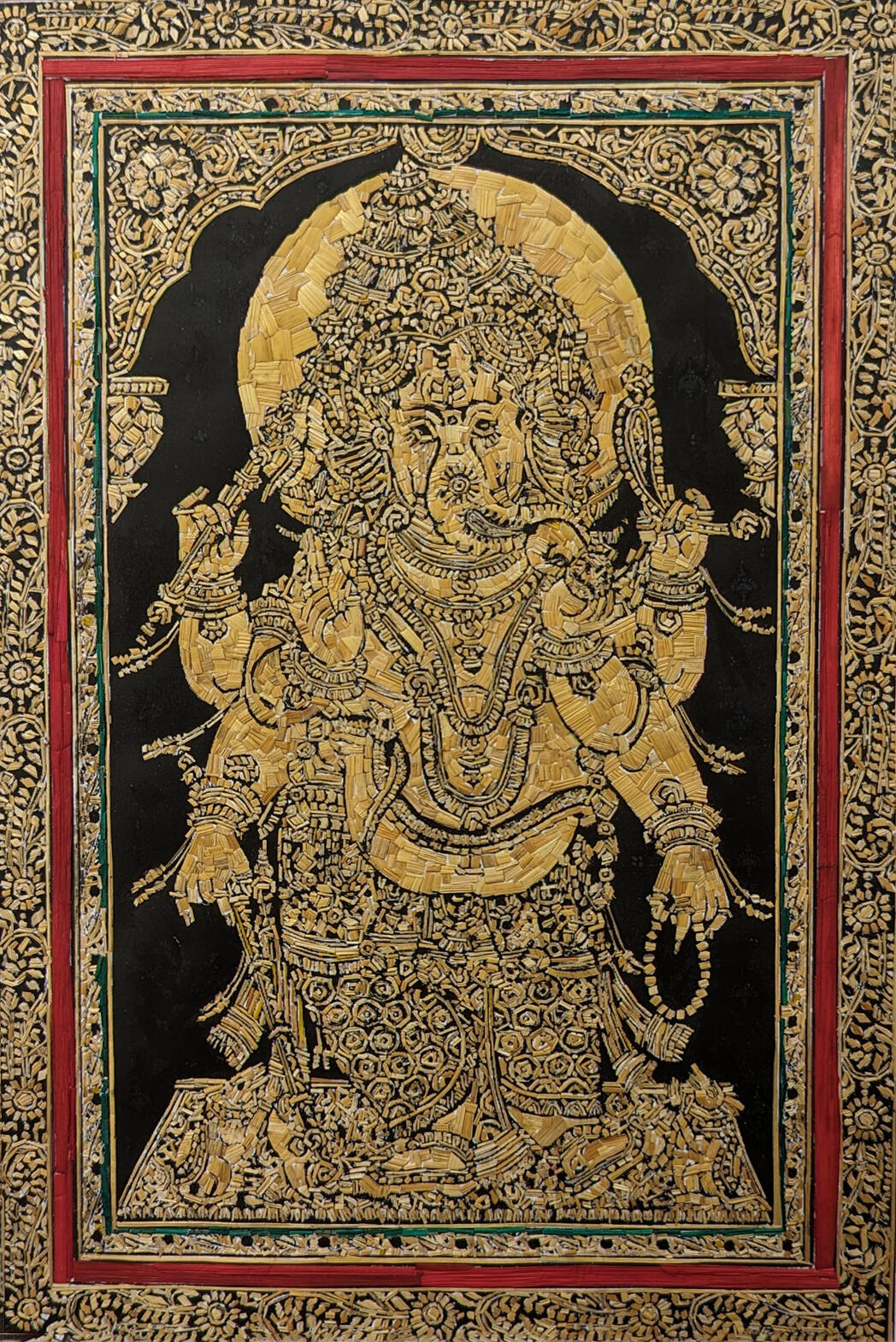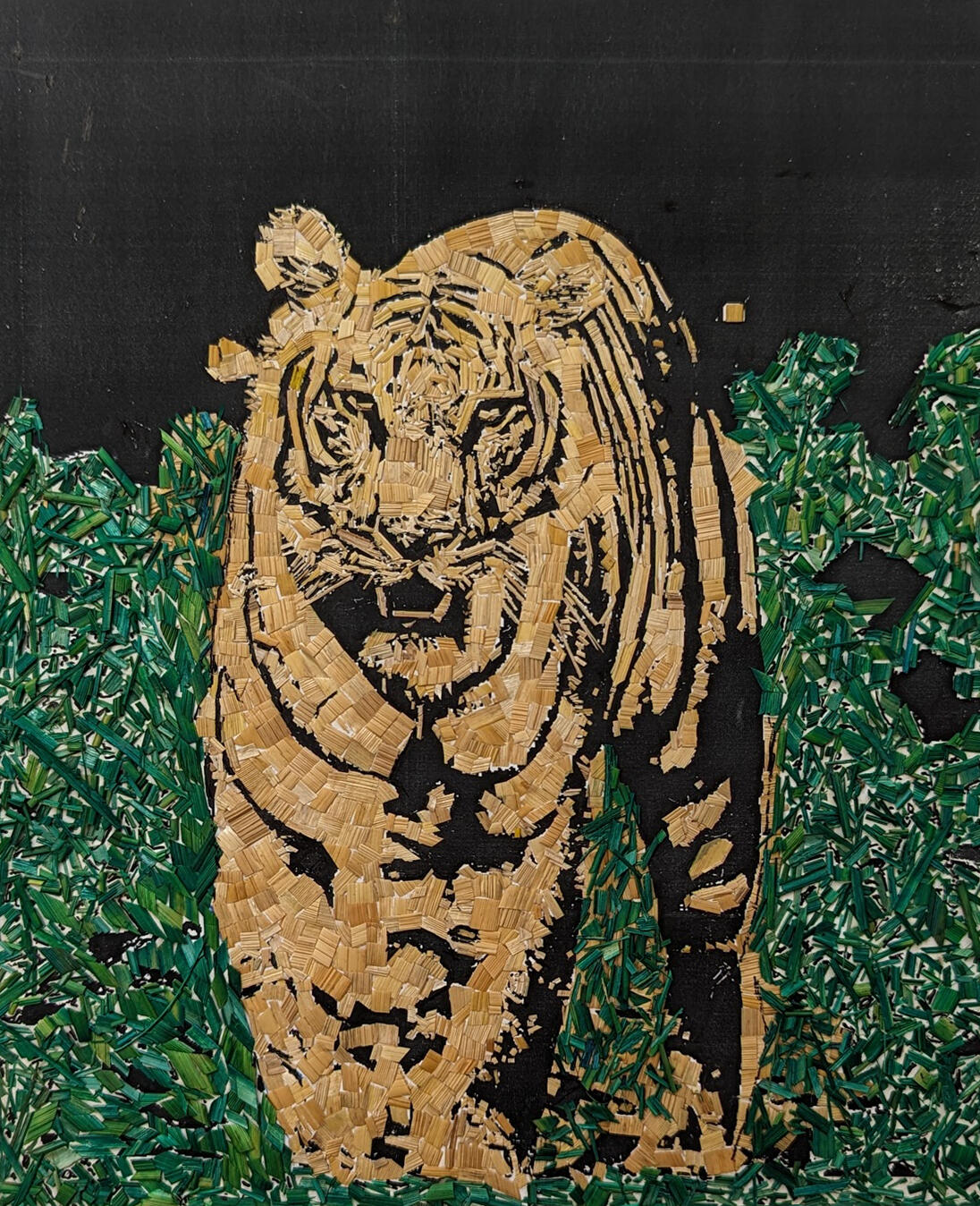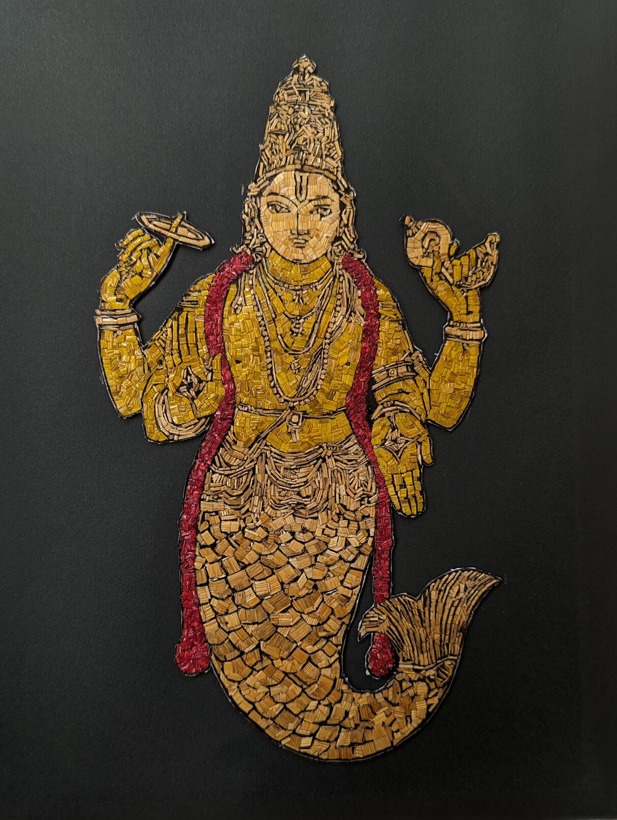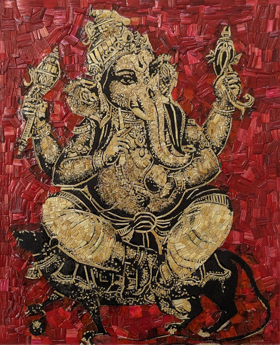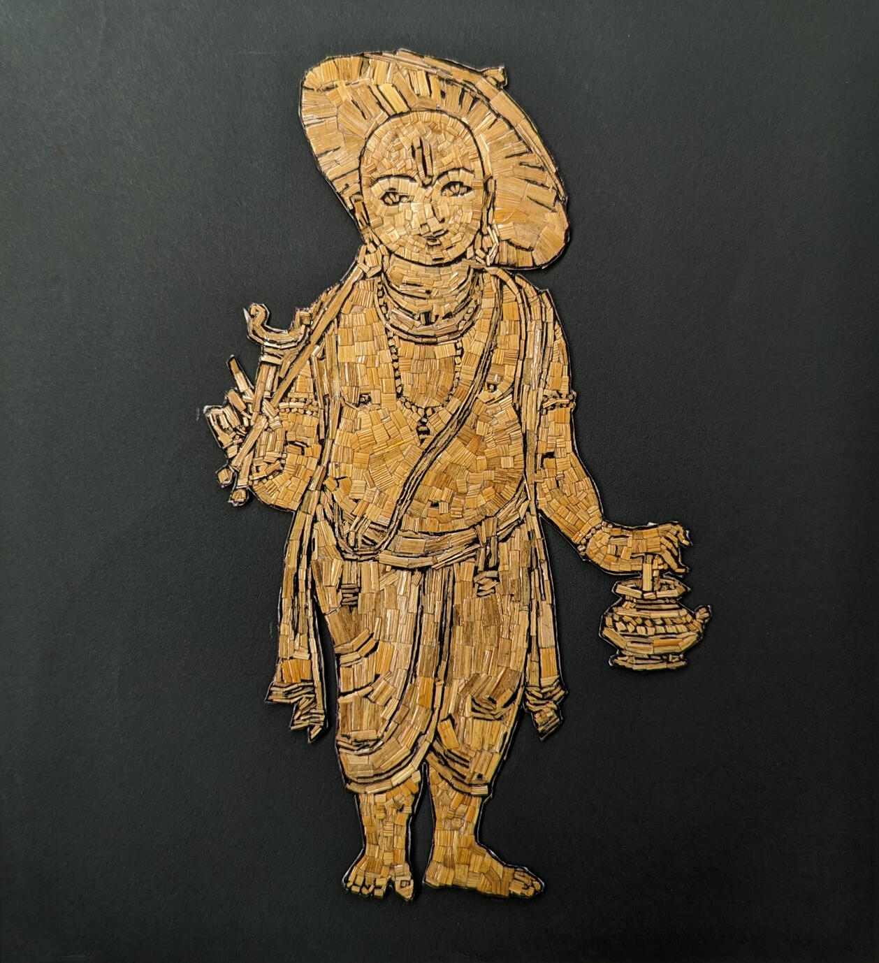 Straw is a simple material. In my work, it becomes structure, texture, and story.I create detailed artworks using carefully cut and arranged pieces of straw. Each work is built by hand, layer by layer.By selecting straw of different ages, I bring natural variations in tone, from pale gold to deep brown, without artificial coloring.My subjects draw from mythology, temple architecture, tribal life, nature, and symbolic geometry.Many works reinterpret traditional Indian forms such as Ganesha, Jagannath, classical dancers, and sacred diagrams through the precision of straw mosaic.Every piece is constructed through patience and control. Straw is split, flattened, shaped, and placed individually to create contrast, depth, and rhythm.The process is slow. The material demands it.This body of work is an exploration of how a fragile element can hold permanence through discipline and design.Phalguni Pattnaik